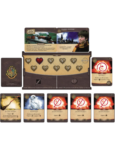 Incarnez l'un de vos personnages préférés et défendez le monde des sorciers contre les forces maléfiques. Améliorez vos capacités en construisant votre jeu avec plus de 140 cartes. Hogwarts Battle comprend sept aventures de jeu offrant des difficultés croissantes au fur et à mesure que vous affrontez des méchants et déverrouillez de nouvelles capacités, de nouveaux secrets et de nouveaux défis. La boîte inclut également quatre dés représentant les maisons de Poudlard, un plateau de jeu, plus de 50 jetons et des cartes de triage.