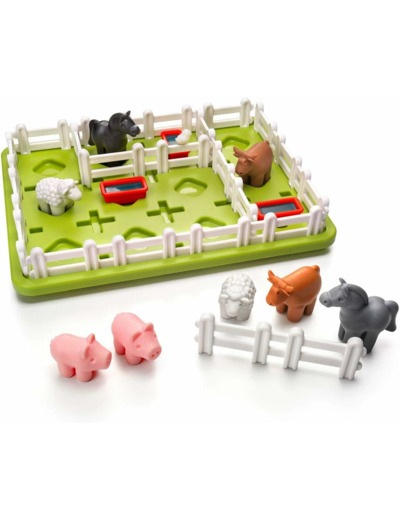 Gardez les animaux séparés ! Petit problème à la ferme ! C’est la pagaille. Les animaux font tout un bazar et doivent être séparés... mais le fermier n'a que 3 clôtures simples pour diviser sa terre en prairies séparées. Pouvez-vous l'aider à placer les clôtures de façon que les chevaux, les vaches, les moutons et les cochons aient chacun leur propre espace ? Pouvez-vous faire en sorte que chaque animal ait son propre abreuvoir ?