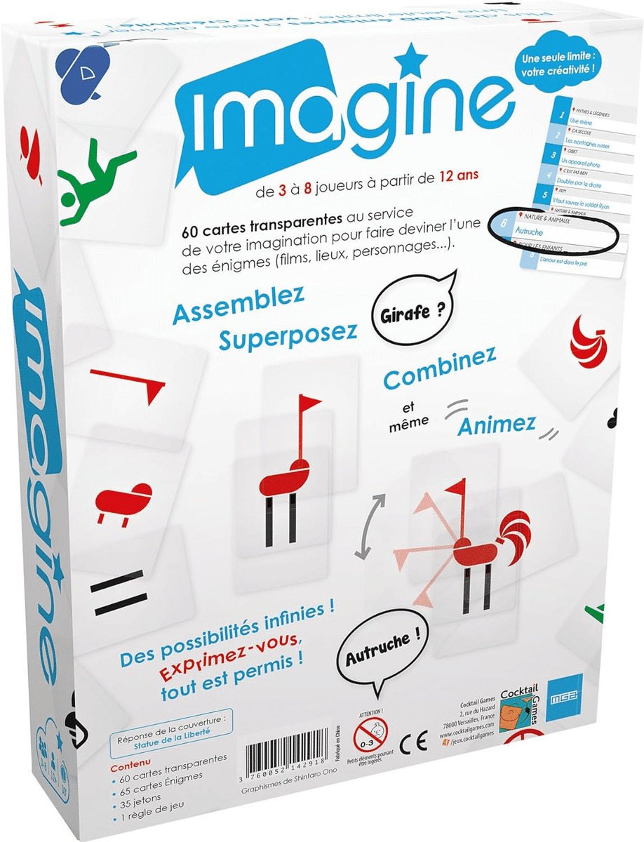 61 cartes transparentes au service de votre imagination pour faire deviner l'une des énigmes (films, lieux, personnages...).