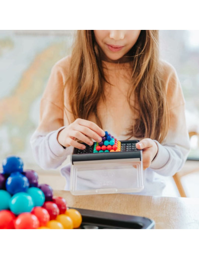 Deux grilles, rectangulaire à l'intérieur du coffret et diagonale à l'extérieur, proposent des défis en 2D alors que la grille ajourée au centre du rectangle propose des défis de forme pyramidale en 3D uniques.