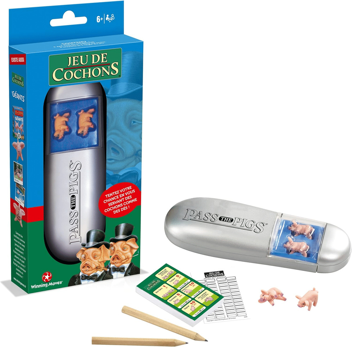 Jeu traditionnel où les joueurs se servent des cochons comme de dés ! Lancez les cochons et marquez autant de points que possible en un tour. Mais attention, ne soyez pas trop gourmand, ou vous risqueriez de tout perdre ! Le premier joueur qui marque 100 points a gagné !
