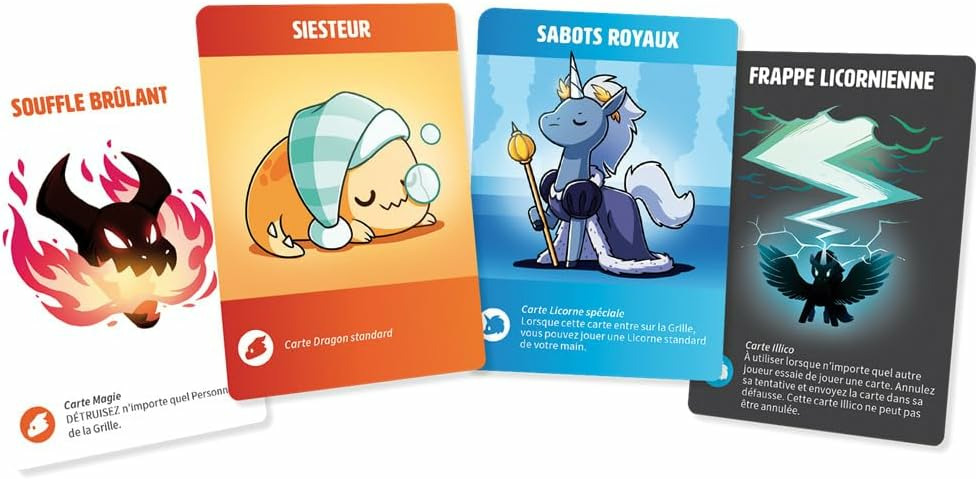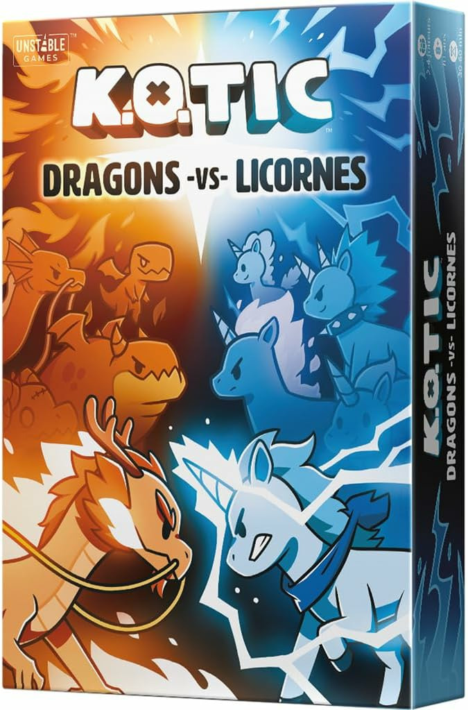 Dans K.O.Tic, deux équipes s'affrontent pour le contrôle de la grille en jouant des cartes Personnage et Magie. Les cartes Objectif vous indiquent les cases de la Grille que vous devez occuper pour gagner. La première équipe à atteindre 3 objectifs remporte la partie. Quelle équipe allez-vous choisir ? Les Dragons ou les licornes ?