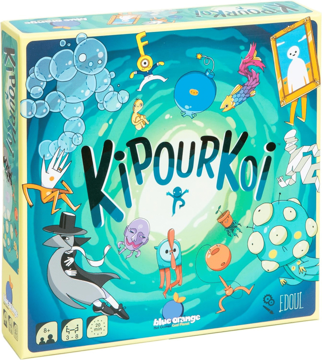 Kipourkoi est le jeu idéal pour les fans des jeux coopératifs. Même si vous votez secrètement, vous devez faire en sorte d’élire collectivement le Zigoto qui répond le mieux à la question. Réfléchissez comme vos coéquipiers pour faire le bon choix ou perdez un jeton de connexion. En bref, c’est un jeu familial qui se joue aussi bien entre adultes qu’avec des enfants pour une partie remplie d’inattendus.