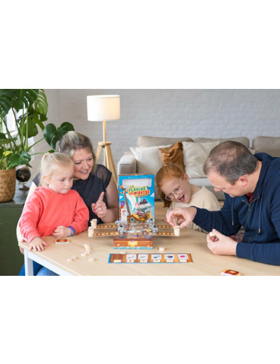 Fouillez le coffre du capitaine et placez des poids au bout la planche de vos adversaires pour les faire tomber ! Mais attention à ne pas prendre trop de risques. A chaque faux pas, vous avancez d'une case sur votre propre planche !