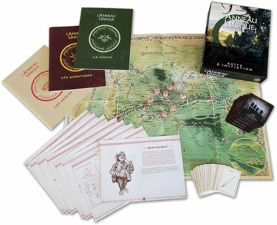 L’Anneau Unique : La Boîte d’Initiation, contient tout le nécessaire pour découvrir ce jeu de rôles, faire vos premiers pas en Terre du Milieu et participer aux aventures des Hobbits.
