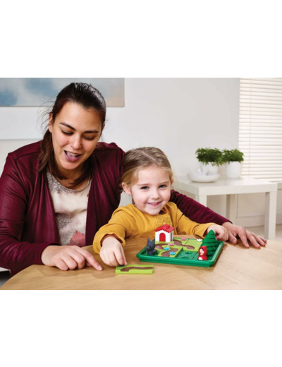 Mais attention! Le loup rode. Jouez également avec lui et parvenez à résoudre 24 autres défis en créant deux chemins différents vers la maison de Mère-Grand : l’un pour le Petit Chaperon Rouge, l’autre pour le loup, qui arrivera toujours le premier.