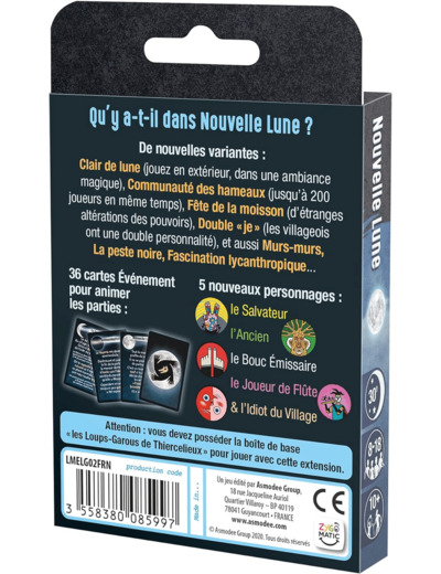 “le Salvateur”, “l’Ancien”, “le Bouc émissaire”, “le Joueur de flûte” et “l’Idiot du village”. Attention à ces personnages on ne sait pas toujours quel camps ils viennent aider...