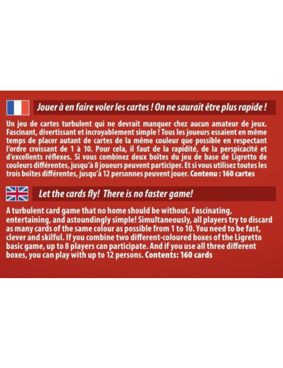 Si vous combinez deux boîtes du jeu de base Ligretto de couleurs différentes, vous pourrez jouer jusqu'à 8 joueurs.