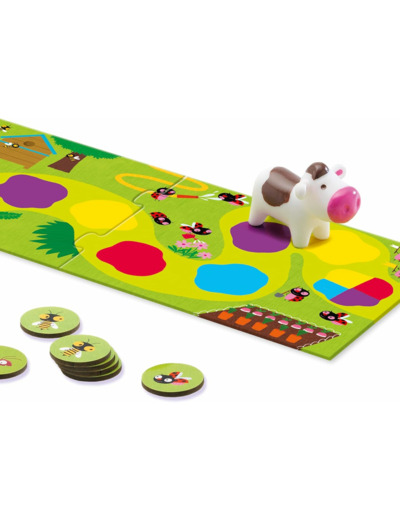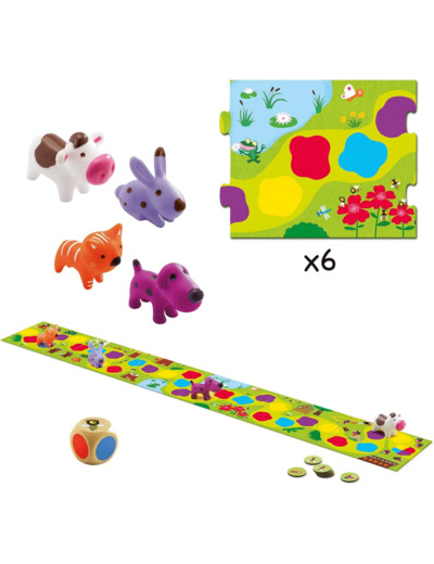Un jeu de parcours pour apprendre le jet de dé et les déplacements sur une piste à l'aide des couleurs pour les enfants de 2 ans et demi à 5 ans.