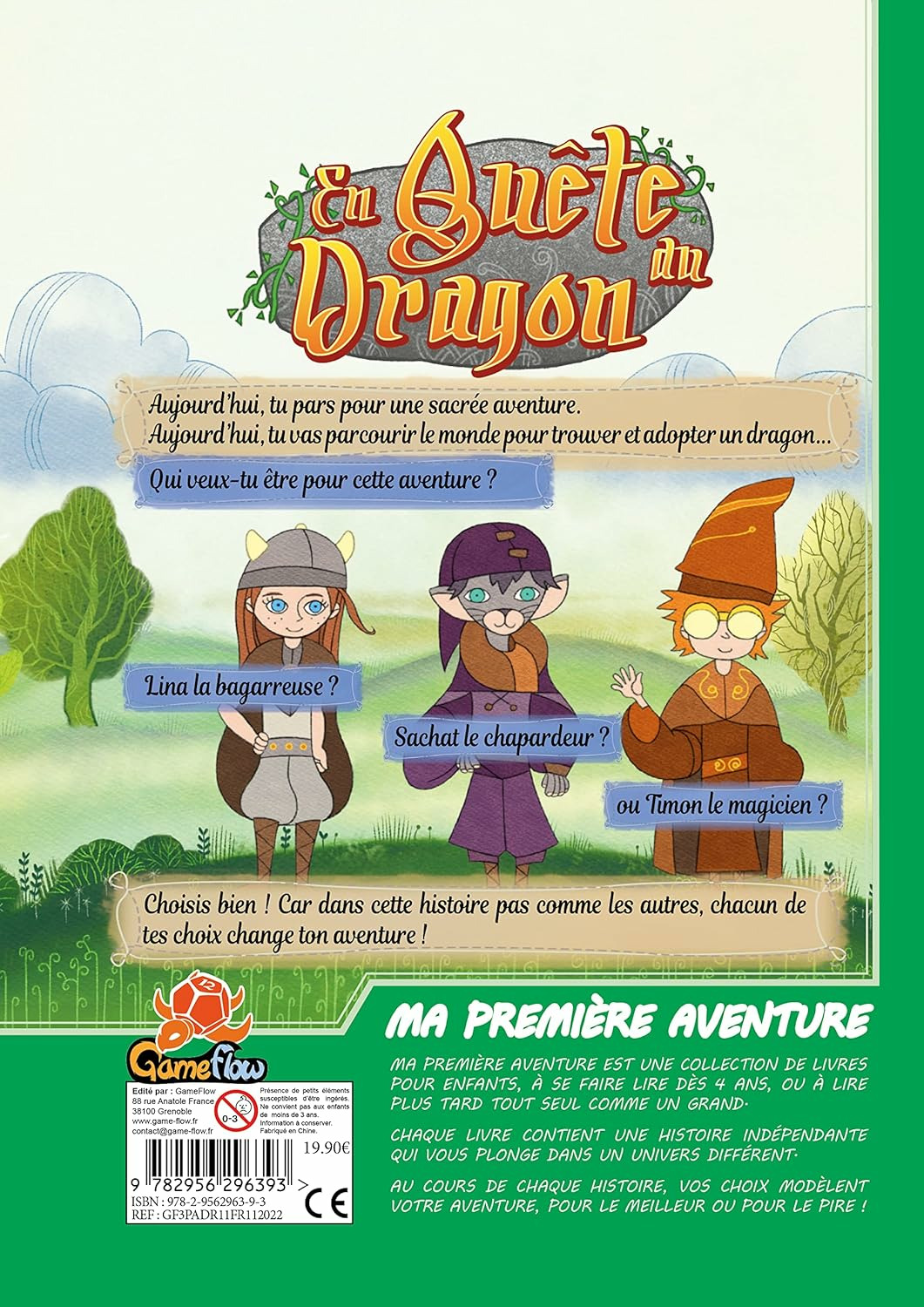 Ouvre le livre et choisis ton personnage sur la roue rouge : Lina la bagarreuse forte et courageuse, Timon le magicien savant et malin, Sachat le chat-pardeur discret et voleur ?