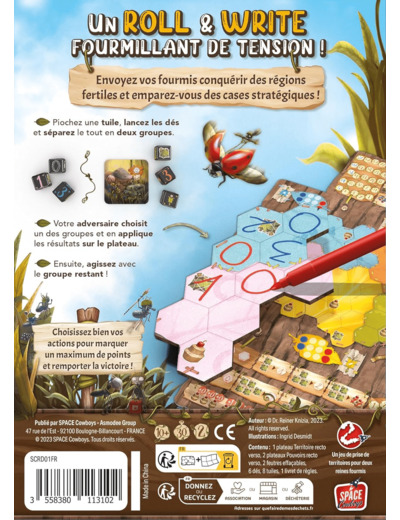 À chaque tour, le joueur ‘actif’ pioche une tuile puis lance les 6 dés. Il répartit ensuite les résultats obtenus et la tuile en deux groupes. Le premier sera destiné à son adversaire, le second à lui, sachant que chaque ensemble doit au moins posséder un élément. Les joueurs reportent ensuite les résultats de leurs dés sur le plateau central et sur leur plateau personnel. L’objectif final est d’être majoritaire sur un maximum des régions (distinguées par leur couleur), de développer au maximum ses pouvoirs, de cumuler des cupcakes et de remplir au mieux les différentes feuilles de score.