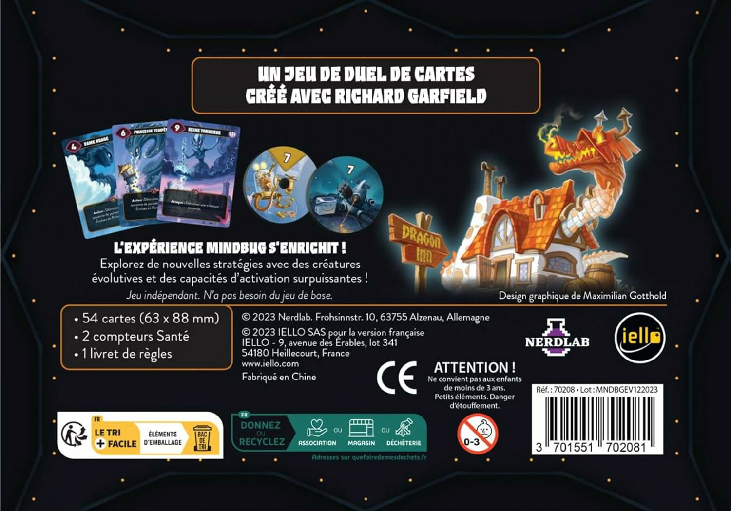 Dans MINDBUG, vous invoquez des créatures hybrides et les envoyez au combat contre les créatures de votre adversaire. Mais faites attention : lorsque vous invoquez une créature, votre adversaire peut utiliser l’un de ses Mindbugs pour en prendre le contrôle. Déjouez votre adversaire lors d’un duel tactique fascinant, dans lequel avoir les meilleures cartes et les jouer au mauvais moment peut s’avérer fatal.