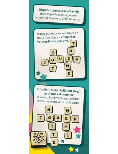 Vous en avez assez des jeux de lettres traditionnels ? Essayez Mixmo, le jeu de mots croisés le plus rapide et excitant de tous les temps ! Le voilà de retour dans un pack et un format renouvelés avec des tuiles en bois. Un jeu de mots croisés passionnant au rythme effréné, parfait afin de se retrouver entre amis pour un moment amusant !