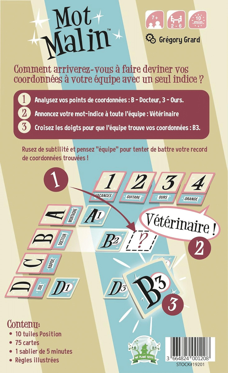 Il faudra faire preuve de cohésion, de réflexion et de rapidité pour relever le défi proposé par Mot Malin. Surveillez bien le sablier et tentez de valider un maximum de cartes ! Une très forte rejouabilité et différents challenges promettent de très nombreuses parties.