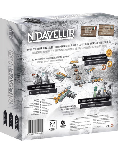 Nidavellir, le Royaume des Nains et des Naines, est menacé par le dragon Fafnir. En tant que vénérable Elvaland, vous avez été mandaté·e·s par le Roi. Sillonnez chaque taverne du royaume, engagez les nain·e·s les plus habiles, recrutez les héro·ïne·s les plus prestigieux·euses et constituez le bataillon le plus à même de vaincre votre ennemi mortel ! A chaque tour, misez une pièce sur chaque taverne. Dans le sens décroissant, choisissez un personnage et intégrez le à votre armée. Chaque Classe de Nain·e·s possède une façon de « scorer » qui lui est propre : Forgeron·ne, Chasseur·euse, Guerrier·ère, Explorateur·rice et Mineur·euse. Un recrutement méticuleux vous permettra d’attirer un·e puissant·e Héros·ine dans votre armée. Vous aurez également la possibilité d’augmenter la valeur de vos pièces d’Or via un ingénieux système de « Coin Building », et donc de prendre le meilleur sur les autres Elvalands.