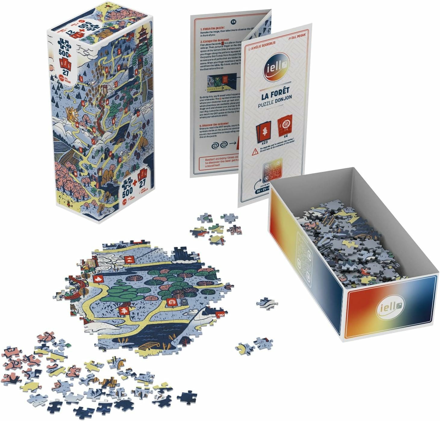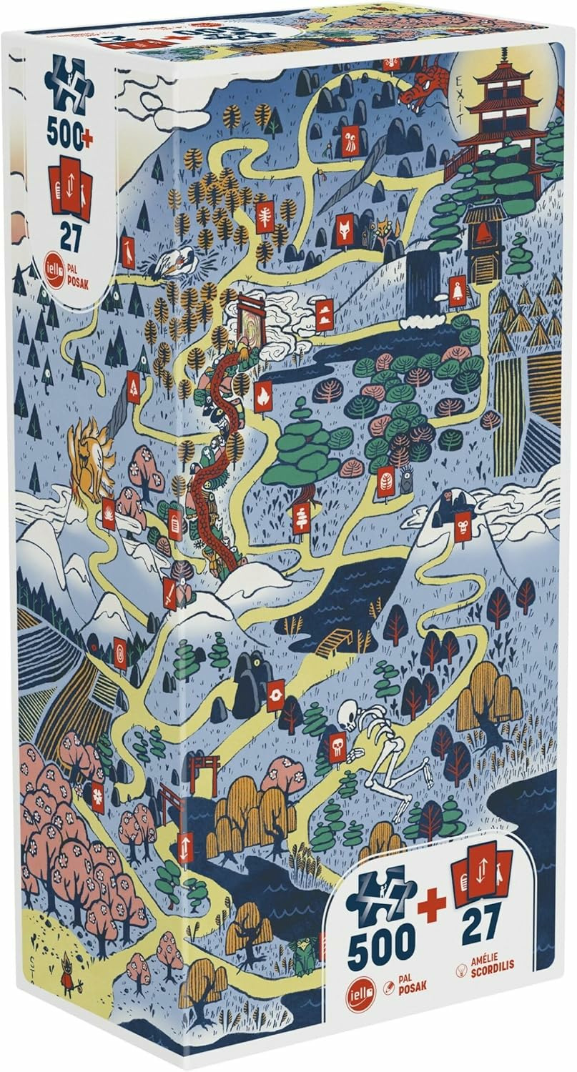 Vous avez terminé le puzzle ? N’en restez pas là ! Il est temps de partir à l’aventure et de vous confronter aux étrangetés de ce monde. Suivez les différents chemins, et révélez au fur et à mesure les cartes correspondant aux symboles rencontrés. En les superposant au puzzle, vous découvrirez alors ce qui arrive à votre personnage, et les conséquences de vos choix ! Dans quel état atteindrez-vous le temple ?