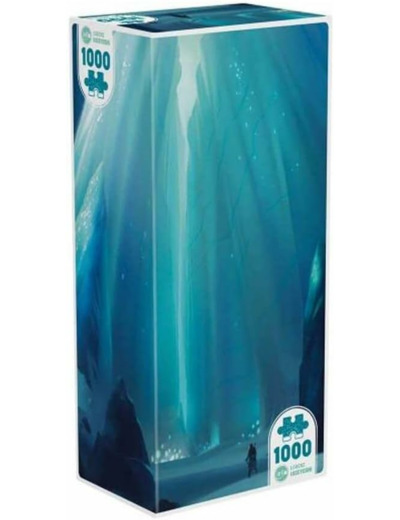 Venez vous perdre dans un labyrinthe glacial, aussi complexe qu’envoûtant, un univers polaire qui aspire le regard par la verticalité de ses lignes et la pureté de ses couleurs. Des surfaces aux fines variations de textures et de teintes qui offriront difficilement de l’aide dans l’assemblage du puzzle. Heureusement, des sources lumineuses étranges sont présentes et habillent la glace de leurs reflets… Tout comme cet aventurier des glaces, dirigez-vous vers la lumière, cela facilitera votre exploration !