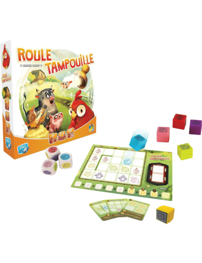 Dans Roule Tampouille, les joueurs lancent les dés à tour de rôle, puis utilisent l’un des tampons animaux désignés par les résultats, sur leur feuille de ferme. Rassemblez les plus grands groupes d’animaux possible ou répondez aux demandes particulières de Sarah pour marquer plus de points et remporter la partie.