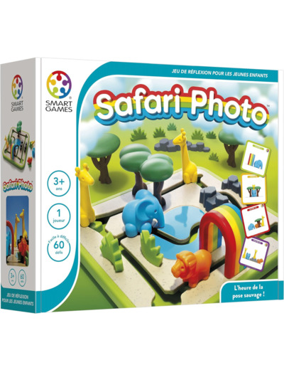 Trois, deux, un… on ne bouge?plus ! Ces animaux sauvages adorent poser pour se faire prendre en photo?! Saurez-vous les placer aux bons endroits pour qu’ils apparaissent dans le cadre?? Rappelez-vous que le lion n’aime pas l’eau, l’éléphant ne peut pas passer entre les rochers et les girafes sont trop grandes pour passer sous les arbres. Un jeu d’apprentissage deux en un pour les petits?qui leur proposera soit de déplacer les animaux dans la savane selon leur imagination, soit de résoudre les défis proposés. « Safari Photo » est un jeu pour appréhender les formes, ainsi que les notions de dessus, dessous, derrière, devant, à droite, à gauche… Observez les formes des pieds de jeu et suivez le chemin. Prêt pour votre premier safari photo??