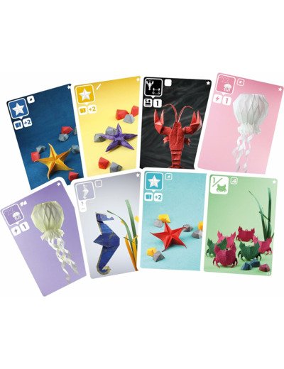 La méduse utilisée avec les nageurs immobilise vos adversaires. Le homard joué avec le crabe vous permet de prendre une carte parmi les cinq premières de la pioche. Le panier de crabes rapporte 1 point par crabe. L’étoile de mer jouée avec deux cartes duo rapporte 3 points, mais annule l’effet et des cartes. L’hippocampe remplace n’importe quelle carte collection manquante.
