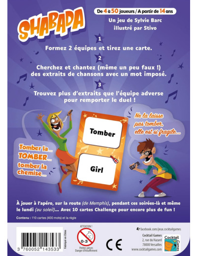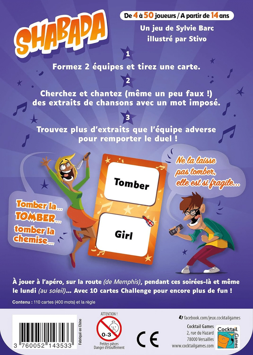 Sur une carte, vous trouverez un mot (ou thème) français et un en anglais afin de varier les plaisirs ! Vous avez également le droit de réciter un extrait de poème et de fable en plus des chansons !