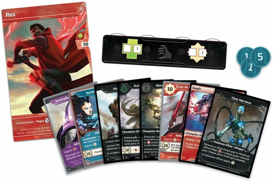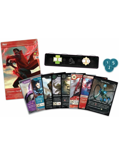 Dans cette deuxième extension du jeu de deckbuiling Shards of Infinity, un nouveau héro nommé Rez vient du futur pour vous avertir qu'un cataclysme est sur le point de se produire.