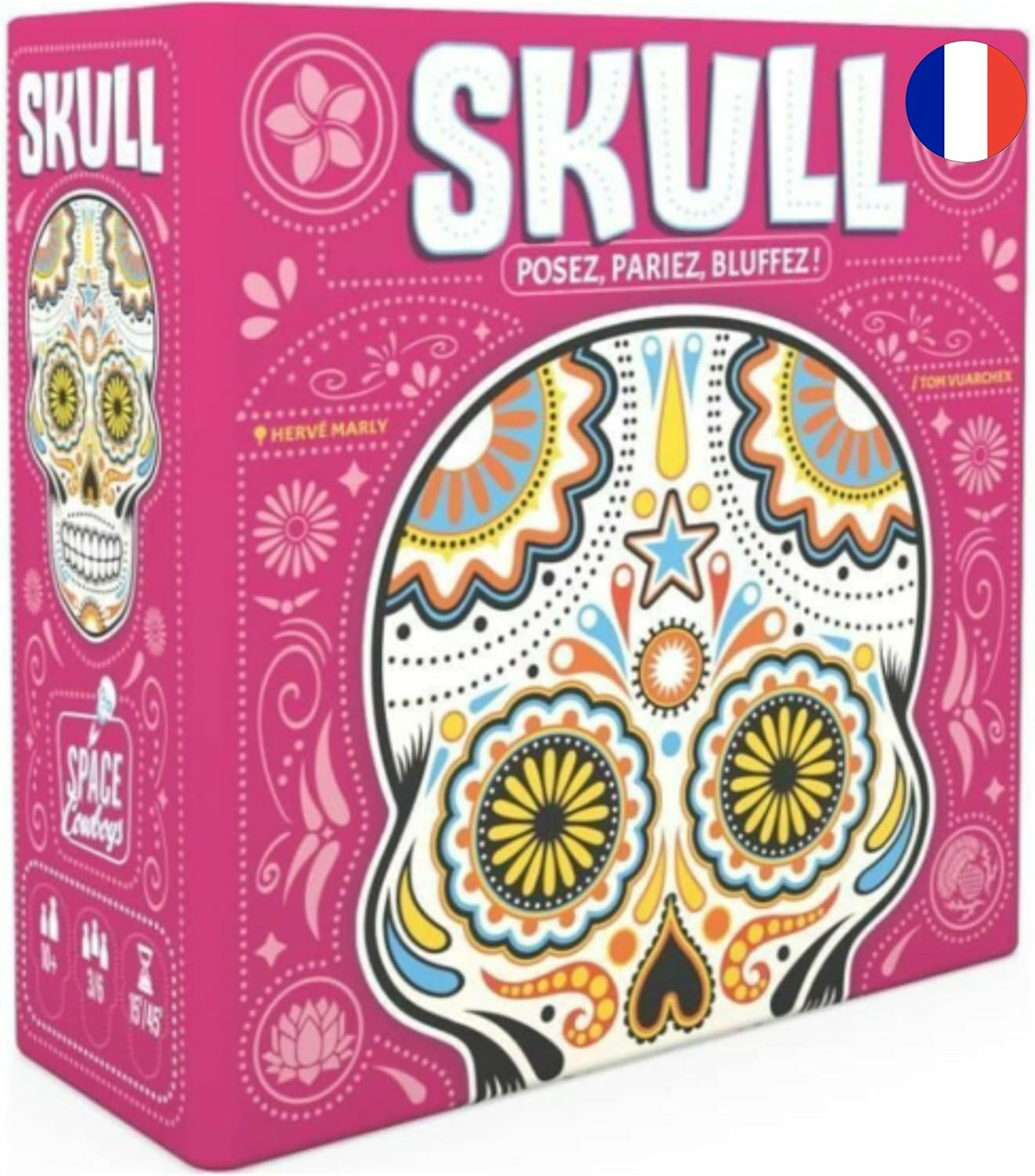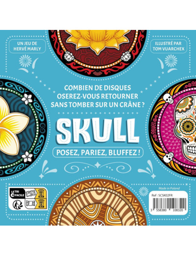 Posez vos disques un par un ou lancez un défi ! Qui osera renchérir et retourner le plus de disques faces visibles en espérant ne pas tomber sur un crâne ? La nouvelle édition du grand classique des jeux de bluff et de prise de risque, avec des règles remaniées et augmentées.