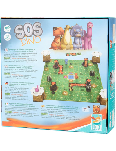 SOS Dino est un jeu coopératif où tour à tour, vous allez devoir faire progresser la lave des volcans puis faire avancer les Dinos qui se trouvent sur le plateau.