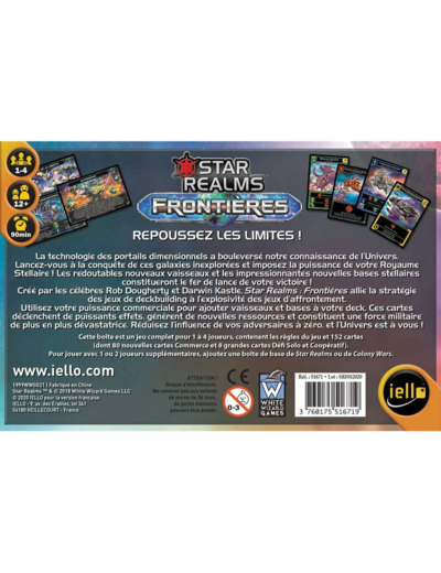 Totalement compatible avec Star Realms et Star Realms : Colony Wars, Star Realms : Frontières peut être joué de manière indépendante ou associé aux autres jeux de la gamme pour des parties toujours plus variées.