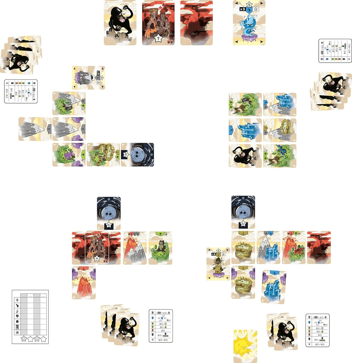 Chaque personne a une aire de jeu devant elle. Il est interdit de jouer des cartes dans l'aire de jeu d'un adversaire. Chaque tour, draftez 3 cartes puis posez vos cartes de façon alternée, une par une dans votre monde, adjacente orthogonalement à une carte déjà posée dans votre aire de jeu. Plusieurs types de terrain ont des contraintes de poses. En cas de non respect, la carte jouée est mise face cachée, face Tzimimes visible et ne rapportant aucune Étoile en fin de partie. D'autres terrain ont des effets de poses contraignants Certaines cartes ajoutent des scoring verticaux et horizontaux.