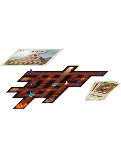 Les habitants se méfient des étrangers et prétendent ne rien savoir du temple perdu que vous cherchez. Mais un jeune villageois, voulant vous impressionner, vous propose de vous guider vers d'étranges ruines sur la Montagne. Vous le suivez et atteignez finalement une porte de pierre gravée dans la falaise. Les inscriptions parlent de feu, de danger, de sang. Vous ne leur prêtez aucune attention et ouvrez le passage vers les profondeurs du volcan ».