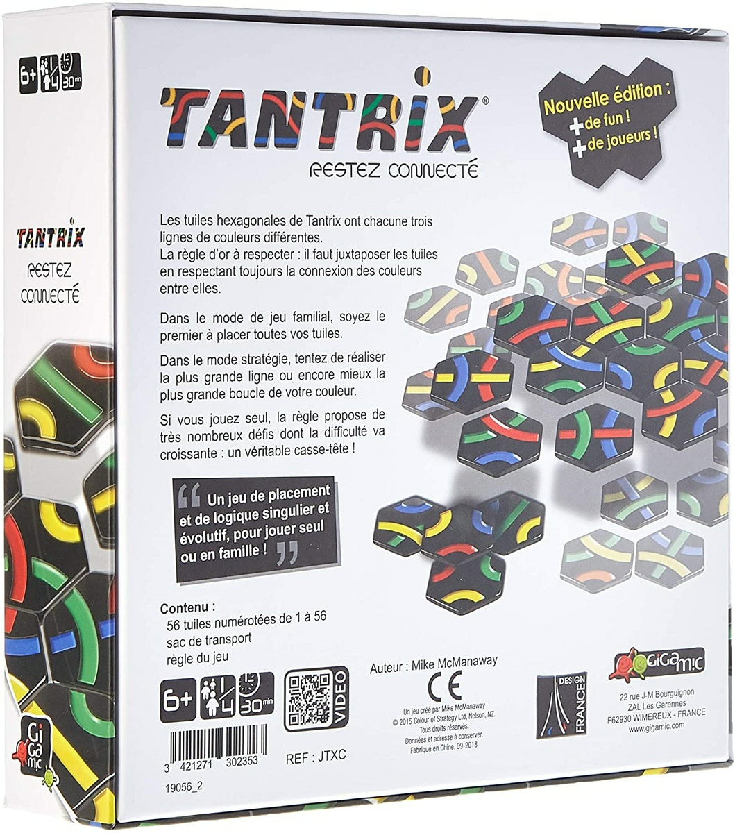 Tantrix : 56 tuiles avec des lignes colorées et un livret qui vous invite à les combiner pour des puzzles de plus en plus complexes.