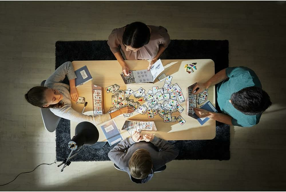 • Chacun prend un porte-documents paravent, un feutre et un dossier d’enquête. Répartissez toutes les cartes faces cachées au milieu de la table. Choisissez une clé et posez-la à côté.