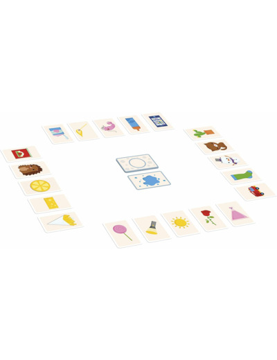 À son tour le joueur regarde s’il a parmi ses cartes un objet qui répond à la caractéristique demandée : il peut s’agir de formes, de couleurs, mais aussi de concepts invisibles comme salé, sucré, chaud, froid, piquant, bruyant, etc.