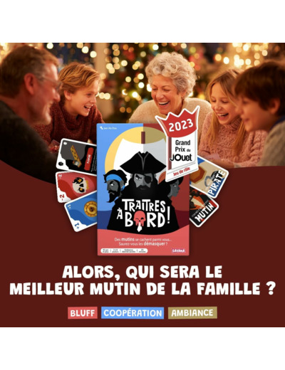 Dans Traitres à bord, chaque joueur se voit attribuer une identité cachée, et certaines personnes sont désignées comme des traîtres parmi l'équipage. Le défi consiste à découvrir qui sont les traîtres tout en préservant sa propre identité secrète. Le jeu est rythmé par des échanges tendus et des interactions sociales, où les joueurs devront user de ruses et de stratégies pour démasquer les traîtres ou les mener sur de fausses pistes. La capacité à bluffe et à dissimuler ses intentions sera cruciale pour survivre à cette aventure pleine de rebondissements.