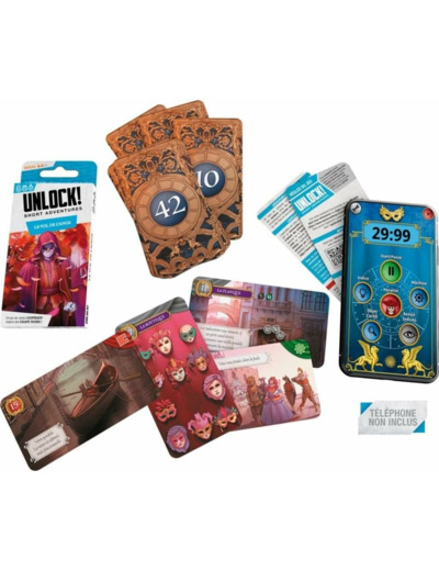 Unlock ! Short Adventures : c'est Unlock mais en plus court !Unlock Short Adventures, ce sont des Unlock de 30 à 45 minutes en petit format, pratique à mettre dans la poche ou à offrir pour faire découvrir le jeu. Unlock ! est un jeu de carte coopératif inspiré des escape rooms.  Unlock! vous fait vivre ces expériences chez vous, autour d'une table. Après avoir pris connaissance du contexte du scénario, vous commencez votre aventure dans une pièce (une carte de lieu qui indique divers numéros). Fouillez-la pour trouver des objets ! Attention : certains peuvent être cachés ! Des énigmes visuelles ou audio ralentissent votre progression. À vous de coopérer avec vos partenaires pour avancer et terminer dans les temps.Unlock !, un jeu interactif qui combine matériel traditionnel et application mobileL'application gratuite Unlock !, compatible avec les téléphones et tablettes Android et iOS, est nécessaire pour jouer. Elle permet d'obtenir des indices, de repérer des objets cachés, mais aussi d'entrer les codes découverts. L'application rend le jeu très concret. Elle contribue à l'ambiance avec ses musiques dédiées à chaque aventure, ses énigmes audio, ses terribles pénalités et son compte à rebours fatal.
