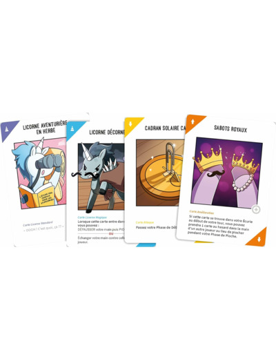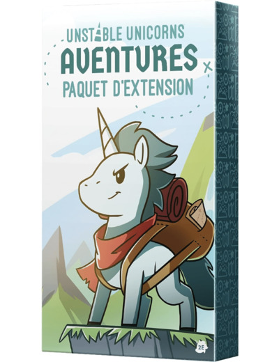 54 cartes nouvelles et délirantes cartes pour Unstable Unicorns : Licorne pêcheuse, licorne matin d’eau douce, licorne campeuse, licorne sauteuse à l’élastique, licorne vagabonde, etc. Et plein d’équipement : canne à pêche, sabots royaux, boussole mystérieuse, etc.