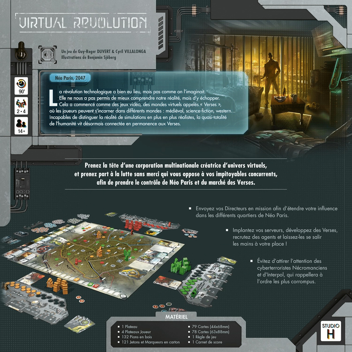 Ces derniers sont développés par des méga corporations toutes puissantes, prêtes à tout pour gagner des parts de marché. Vous appartenez à l’une d’elle, et votre mission est de vous rendre maître de Néo-Paris. Placez vos Cadres dans Néo-Paris pour recruter des agents, générer des revenus, construire des serveurs, lancer de nouvelles Verses ou vous mettre en règle - car vos actions ne sont pas toujours légales et vous risquez de subir les attaques des activistes Nécro. Jusqu’où êtes-vous prêts à aller pour vous emparer de la ville ?
