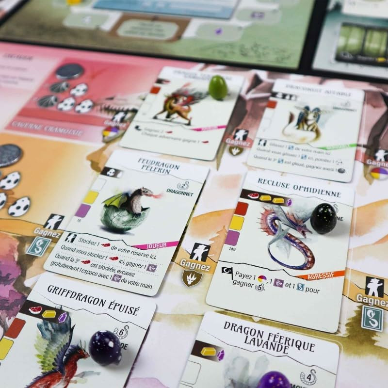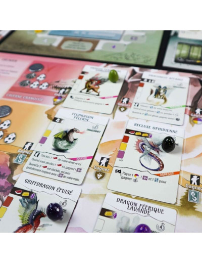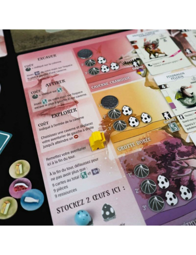 Au cours du jeu, vous creuserez des espaces supplémentaires dans votre sanctuaire et inciterez les dragons à y vivre, enchaînant de puissantes capacités et gagnant la faveur de la guilde des dragons.