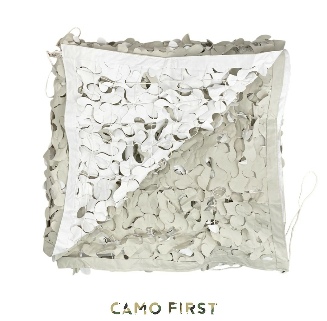 Choisissez le premium camo first blanc pour la neige, le camo first beige pour terrain désert, ou le premium camo first vert pour la forêt. Combinez plusieurs panneaux pour un filet camo cordé XXL ou une zone d’ombre modulable.