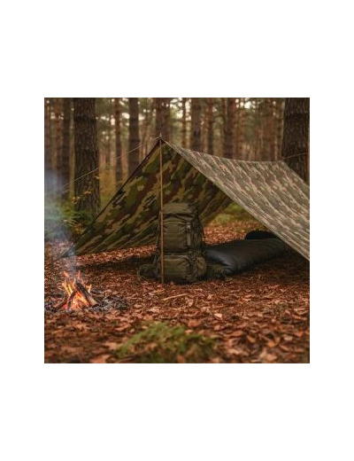 Cette bâche militaire légère est l'équipement de protection idéal pour bivouac, randonnée et camping. Imperméable et compacte dans son sac de transport, ce tarp offre une imperméabilité maximale pour protéger votre sac et votre matériel lors de vos expéditions outdoor en toutes conditions.
