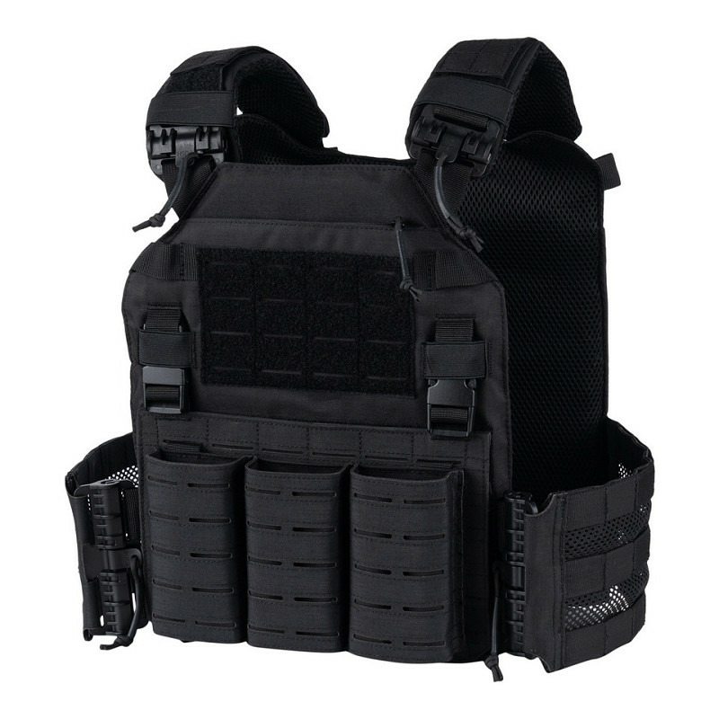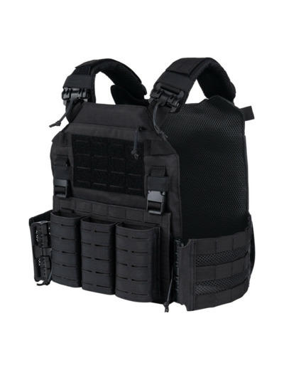 Découvrez la protection ultime avec notre gilet porte-plaques tactique noir QR Plate Carrier laser cut, conçu pour les missions exigeantes et les professionnels de l'intervention. Ce gilet tactique robuste en Cordura 500D vous offre une modularité exceptionnelle et une protection balistique supérieure. Équipé de deux plaques d'armure factices, d'un système MOLLE découpé au laser et de points d'attache stratégiques, il garantit une modularité maximale pour tous vos équipements tactiques.