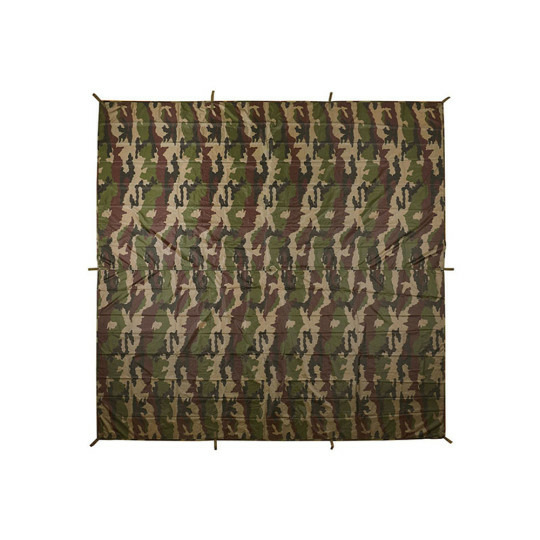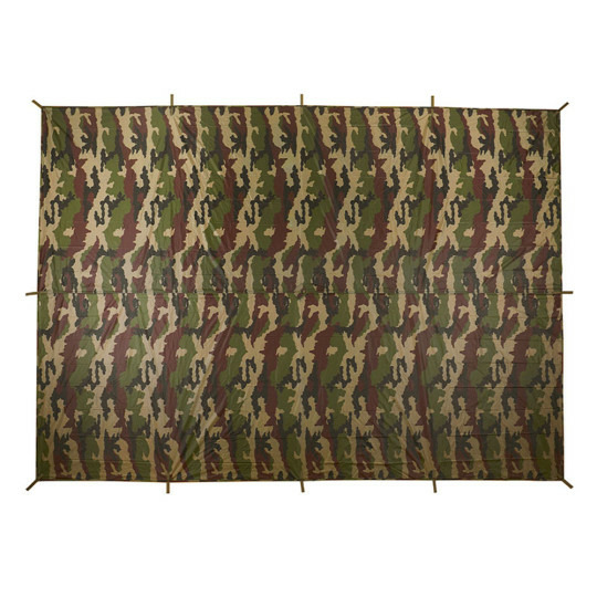 Fabriquée en tissu ripstop 2.5 LIGHT-SHELL 1 LAYER, elle est renforcée aux points d'ancrage pour résister aux vents forts. Les 8 œillets en métal et le système d'accroche central facilitent la fixation de la bâche quel que soit le relief.