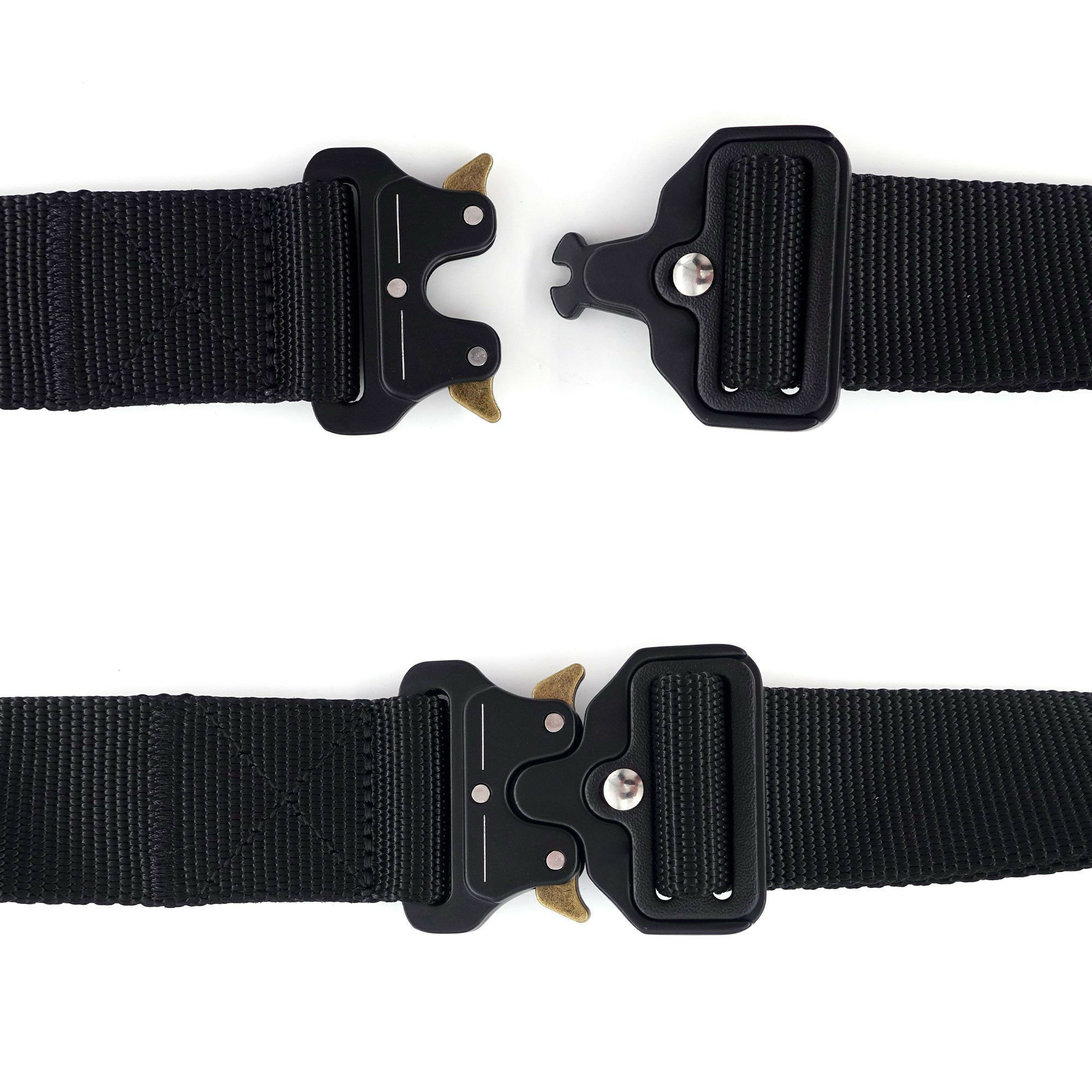 Cette ceinture réglable en 100 % nylon est munie d’une boucle à clip métallique qui permet une utilisation à une main de façon simple et rapide