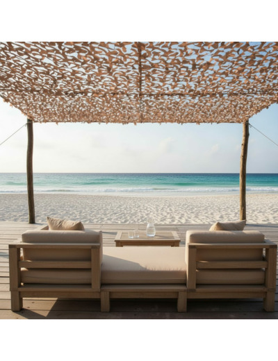 Grâce à son motif camouflage en coloris sable et désert, ce filet de camouflage renforcé assure une occultation optimale sans alourdir la décoration de votre extérieur. La finition anti-reflet et le traitement anti-UV renforcent la protection visuelle, idéale pour un usage résidentiel, événementiel ou outdoor sur terrasse, pergola ou jardin.