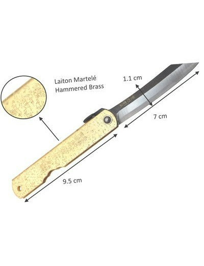Lorsque le couteau est neuf, la lame peut être un peu tendue mais se desserrera avec le temps. S'il devient trop lâche, il peut être resserré en martelant le pivot - une grande caractéristique du couteau Higonokami.