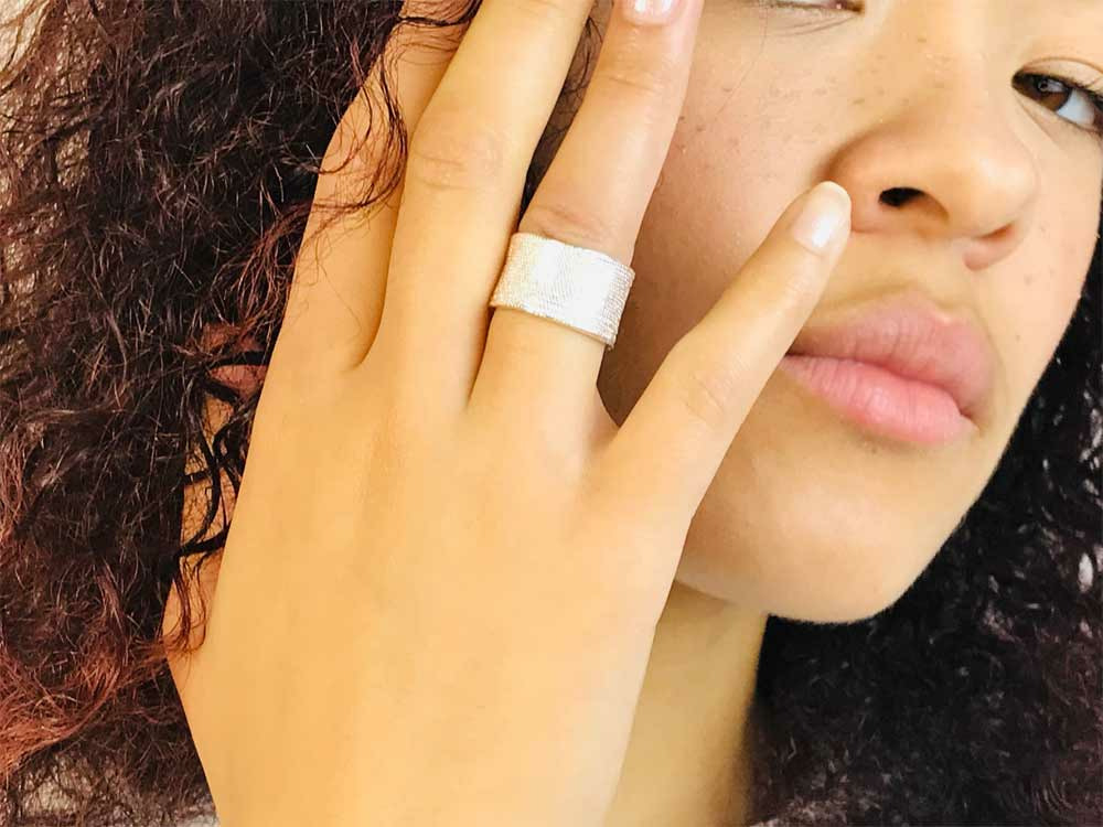 • Portez à votre doigt cette très belle bague ajustable en argent 925 finement martelée, Cette sublime bague tendance pour femme en argent rhodié ne laissera personne indifférent