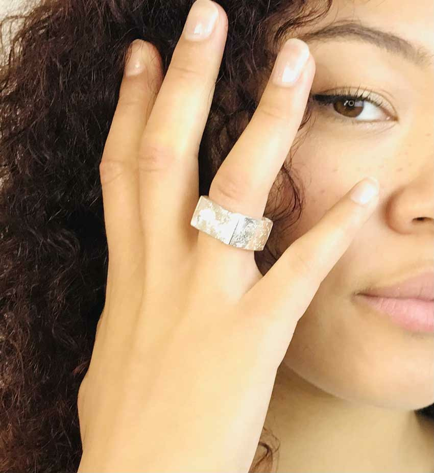 Bague Large Ajustable Argent Gravé Design