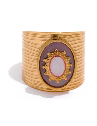• Bague manchette large ornée d’un très joli camée en forme d’étoile ouvragé sur une pierre en jade synthétique de couleur verte ou en rhodonite rose