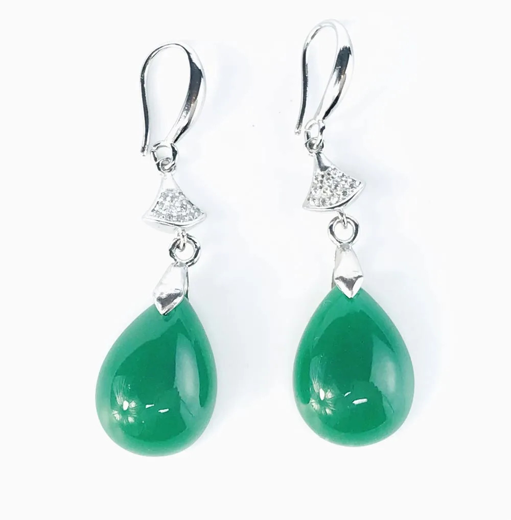 Ces boucles d’oreilles pendantes en jade sont bien plus qu'un simple accessoire de mode. Leur design, pensé pour allier sophistication et légèreté, met en avant chaque détail de la pierre précieuse. La goutte de jade, au centre du bijou, est soigneusement taillée et polie pour offrir une surface lisse et brillante. Suspendue à un support argenté délicatement travaillé, elle oscille élégamment à chaque mouvement.